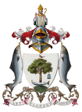 Glasgow Coat of Arms (Kentigern) Wikipedia Commons Next Published September 5, 2015 at 352 × 480 in Hoddom and Brydekirk: The Fire of the Gods Endures Glasgow Coat of Arms featuring St Kentigern, Wikipedia Commons