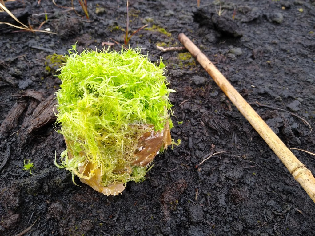 As this vegetation decayed the lakes were filled in with ‘fen peats and sediment’. The plants at the centre were ‘cut off from the nutrients at the lake margins.’ These nutrient poor, waterlogged conditions were perfect for sphagnum mosses to come to dominate, forming a thick carpet.