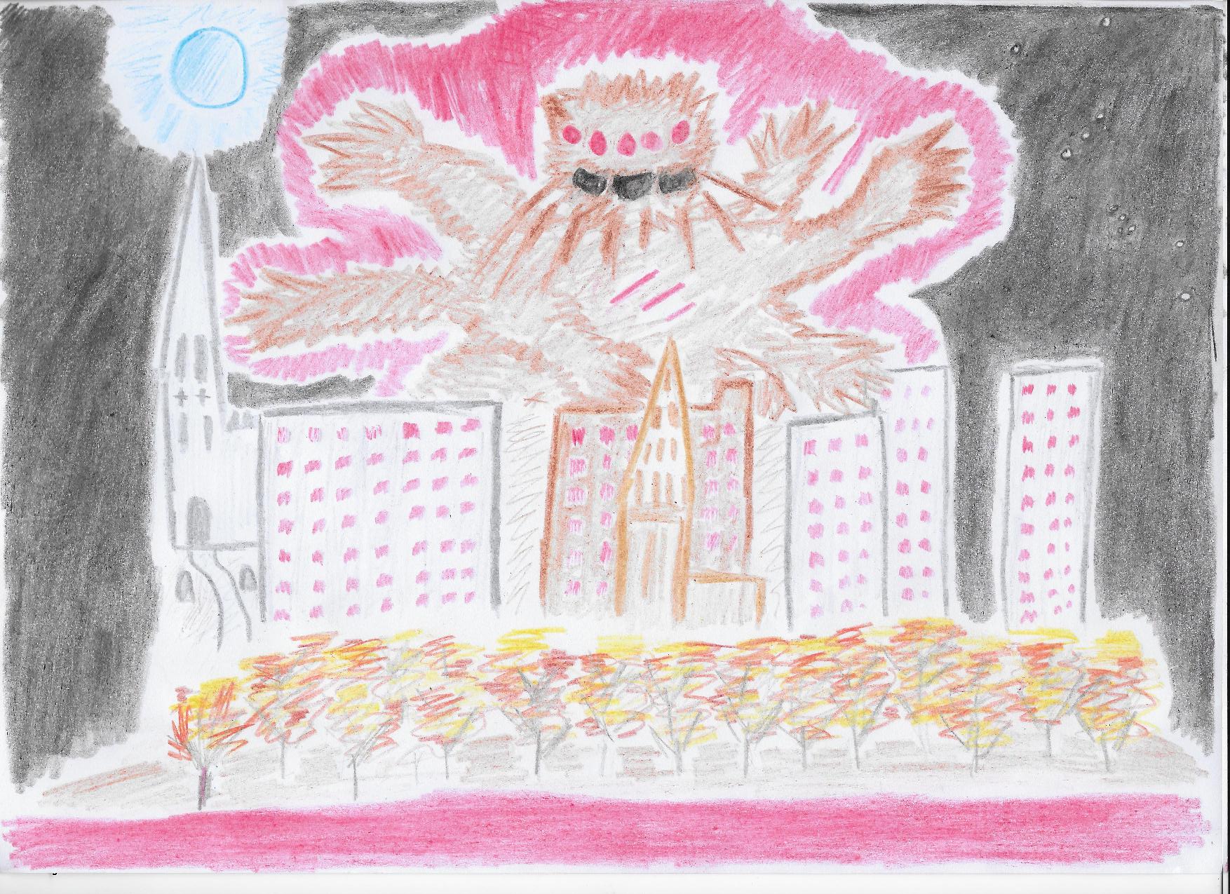 Some prayed, to God, to the old gods, to Mother Earth, to Old Mother Universe, for something that would bring this system to an end. As if in answer to this prayer (and monsters are wily) appeared a beast the size of a sky scraper with limbs of countless animals, bent and twisted, as if trapped in a cage. Its lungs heaved phlegmatically in its scarred and hairy chest. Its many eyes were red and its mouths were gaping holes. Around its head was a blazing halo that burnt without burning the beast.