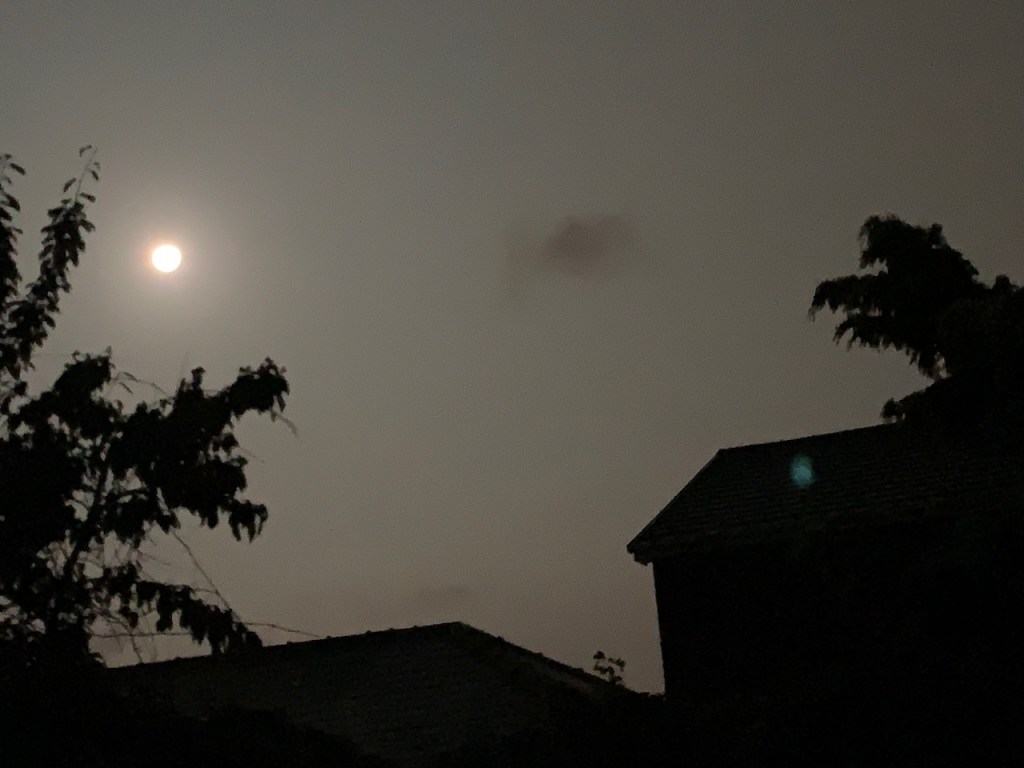 Tonight the light of the blue moon is eclipsed by the beast’s fiery halo burning brighter than bright.