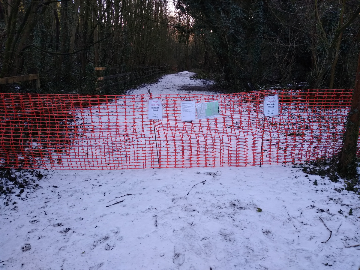 It’s a place I visit often, so I was surprised, when I got there, to find orange mesh across the entrance from the A59 and to read a notice stating that the footpath was closed due to a landslip. I walked to the second entrance by the Ribble where, again, I found the orange mesh, but it didn’t extend into the woodland.