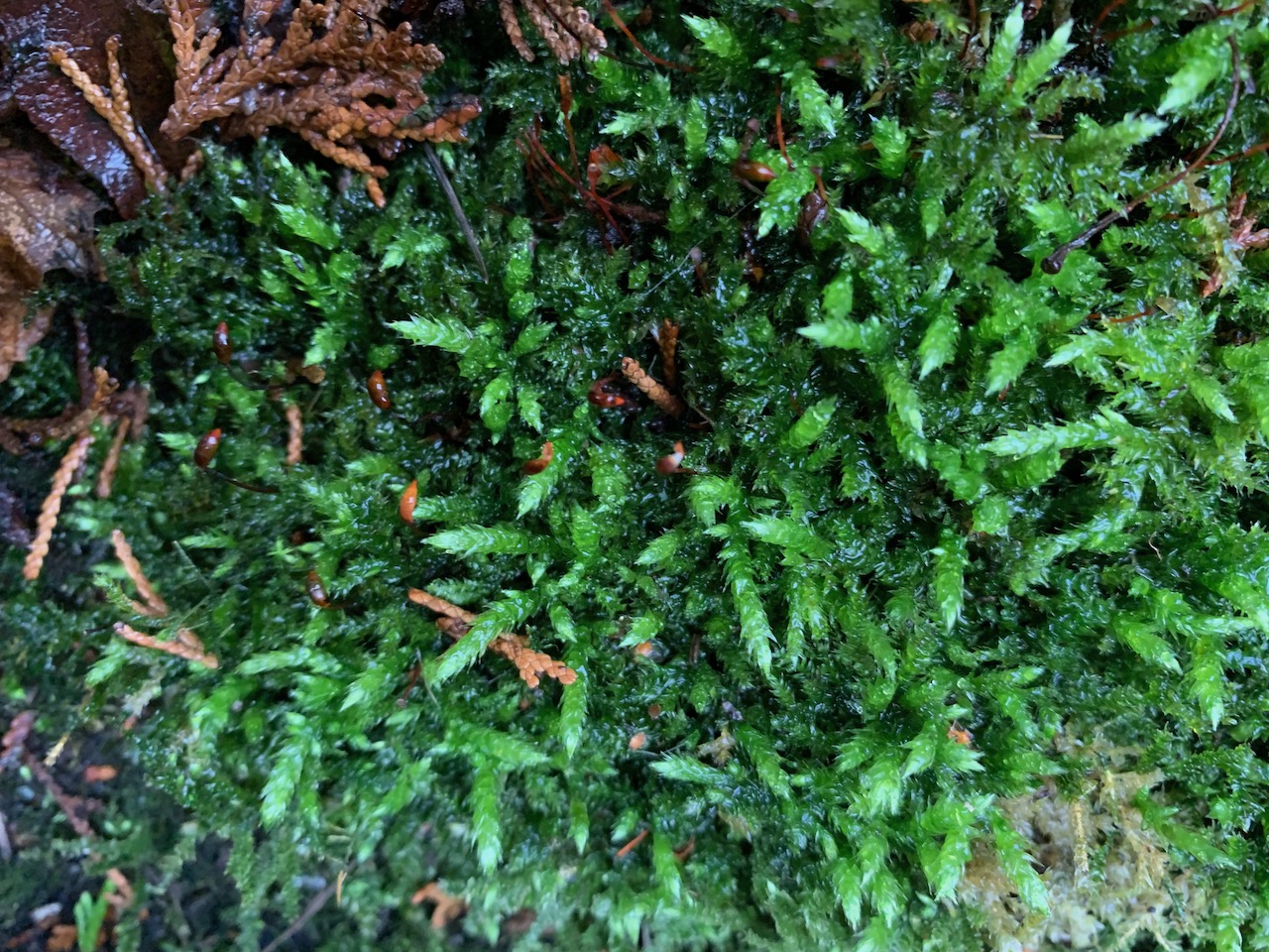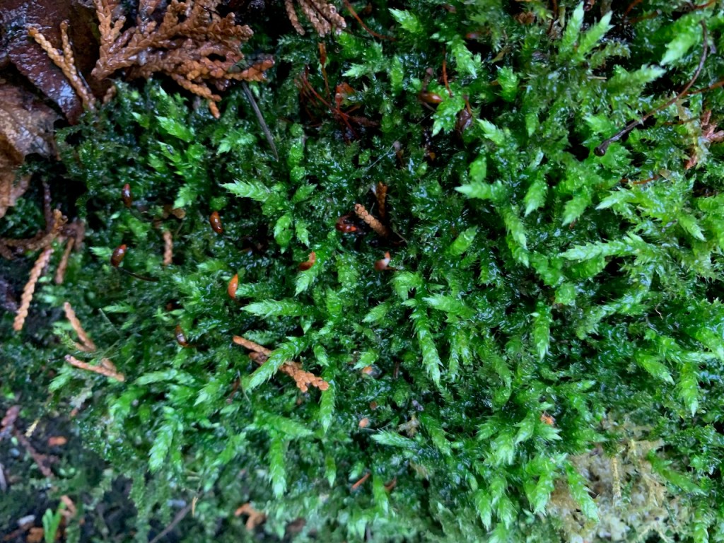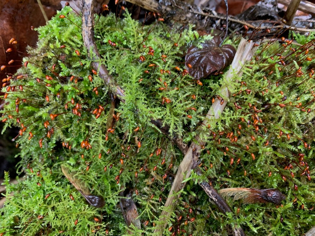 In Church Wood the most abundant moss was Common feather-moss (here with capsules present).