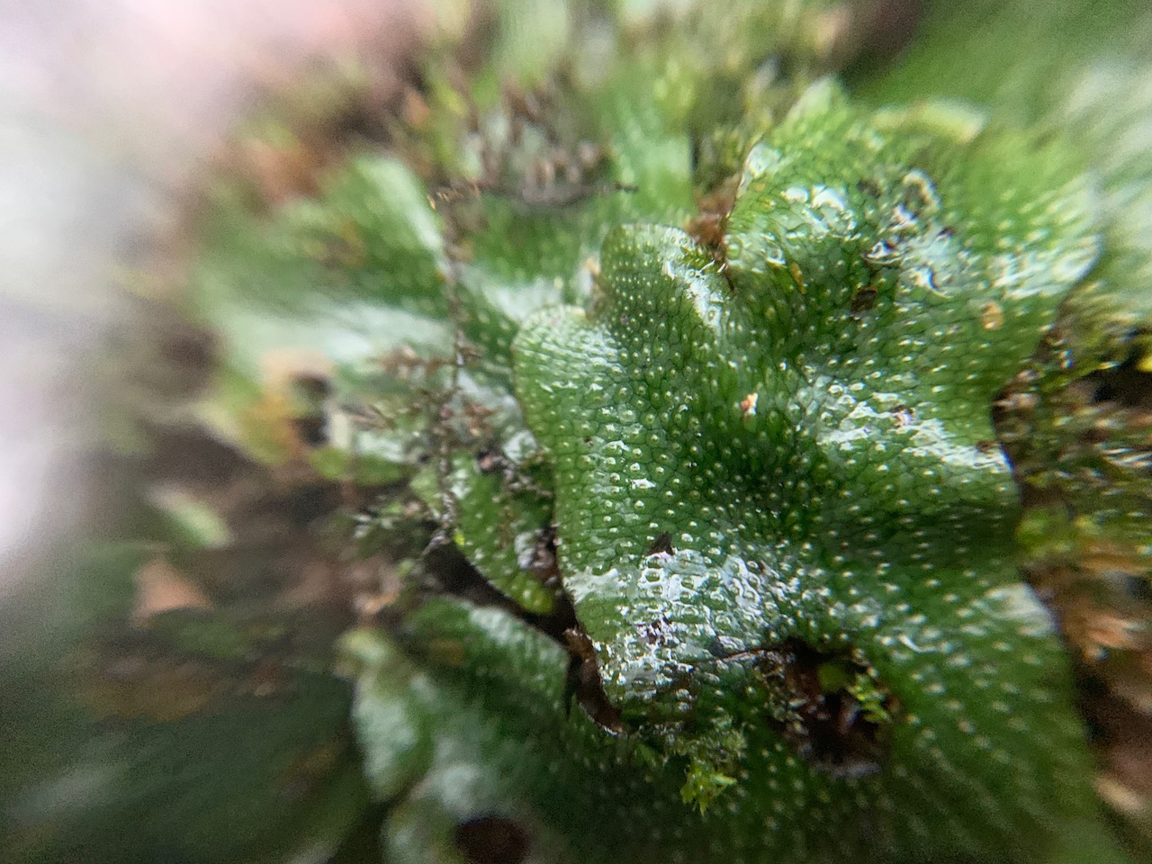 Although I didn’t identify as many different mosses as I had hoped to in Church Wood it was a treat to find Great scented liverwort (Conocephalum conicum) on a damp bank.