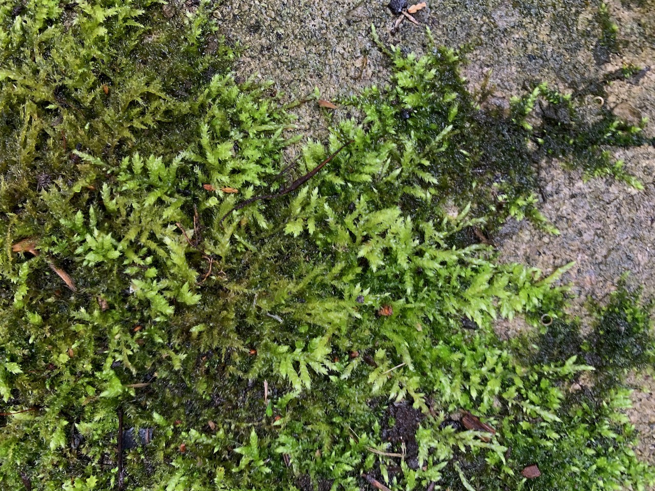 On a stone on the side of Church Avenue was this unidentified acrocarpous moss.