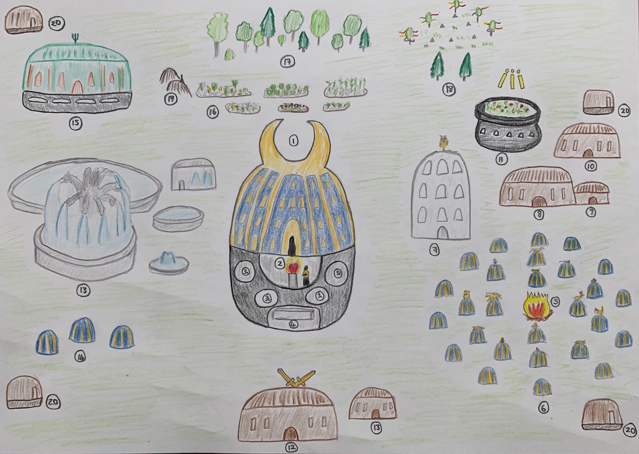 *The Huts of the Monastic Devotees were inspired by Danica Swanson’s ideas around a ‘cottage cluster monastery’ and the bee hive huts of monastics associated with the south-western Irish seaboard. **Matins / vigils (nighttime), lauds (early morning), prime (first hour of daylight), terce (third hour), sext (noon), nones (ninth hour), vespers (sunset), compline (end of the day).