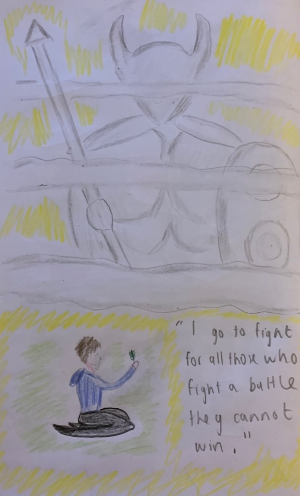Messy the battle, the roses white and red, some say King Arthur ended it. They’re wrong – it was me – it was me and my flowers that brought peace.