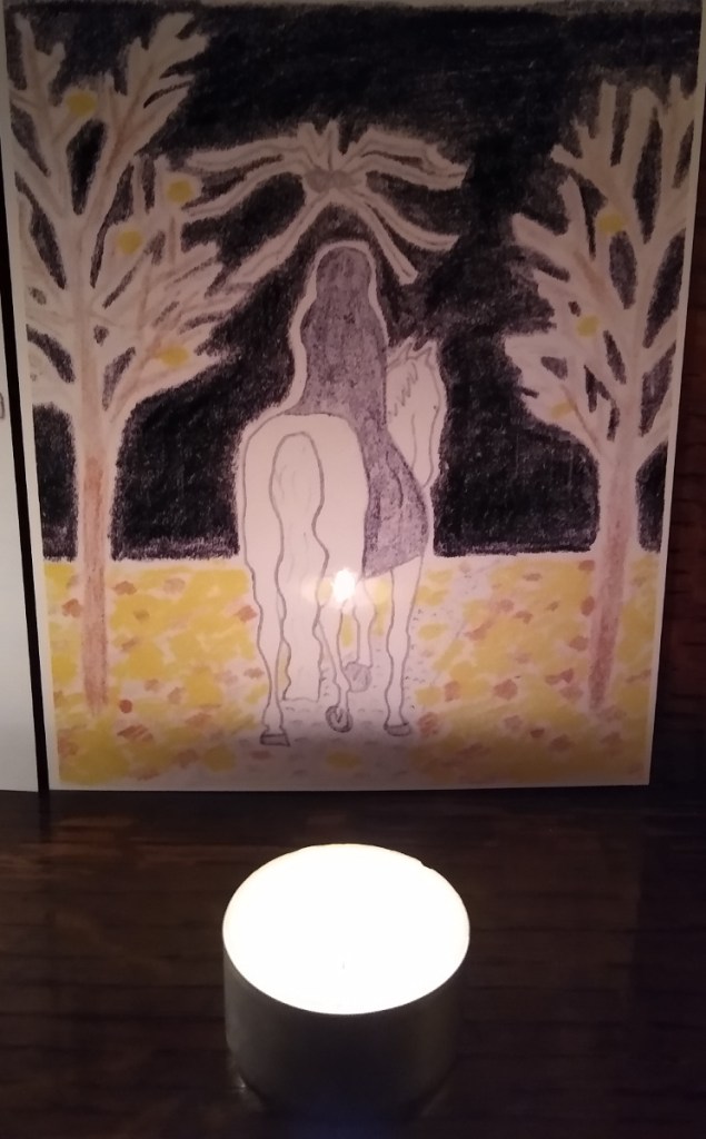 This poem is a follow up of my poem ‘I light a candle for Epona‘ based on the journey of the Great Mare to the Otherworld to win back her lost son. I linked this to my brother’s period of hospitalisation. I’m glad to say he is back now and on the road to recovery so many thanks to the mare goddess and to those who sent good wishes and lit candles.