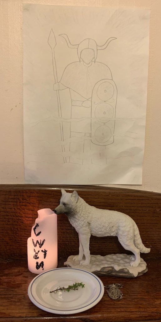 When I started worshipping Gwyn ap Nudd over ten years ago I found out on Calan Mai He fights a battle against His rival, Gwythyr ap Greidol, for His beloved, Creiddylad. Although it isn’t explicit within the source material (1) parallels with other seasonal myths (2) suggest that Gwyn, as Winter’s King, is defeated by Gwythyr, Summer’s King (3) at the turn of summer, ‘dies’, and enters a death-like sleep. He then returns at summer’s end to take Creiddylad to Annwn and assert His rule as Winter’s King.