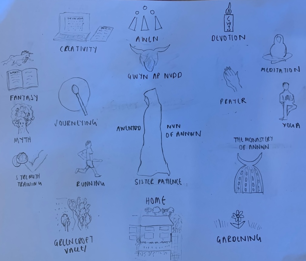 Sacristan – I first came across this term in the work of of fellow polytheistic Danica Swanson who runs Black Stone Sanctuary (5) but only recently realised it fits my vocation. For me it refers to someone who tends sacred spaces. I see it to include my altars and monastic cell and to be expandable to my home and garden (which I am striving to treat as a monastery). I also see it to relate to my work building and administering the Monastery of Annwn and to co-organising and often leading rituals and meditations.