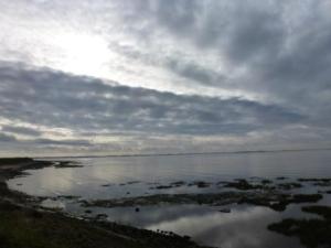I follow down the hollow way heedless of the downpour weighing my cloak for the damp of the air already resides deep within my bones. Looking east, rain drenches the green hill, our sacred headland, and the greener barrow housing our ancestors. The torrent’s drumming beat strikes bubbles across the marsh land. As I walk onto the wooden pad way the reeds hiss like snakes. Decay bites my throat. The steely cast of the river of shining water reflects the glumness of the sky.