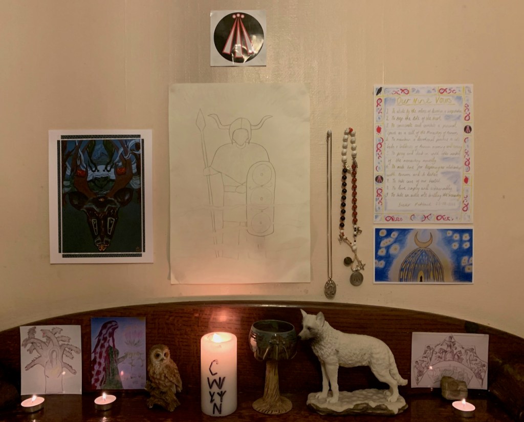 Right now it is the sacred spaces I keep for my Gods at home and here online. It also the sanctuary I carry within me when I facilitate meditations and rituals for the monastery and one-to-one and group shamanic sessions.