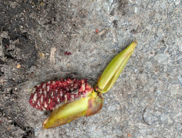 *This poem is addressed to the two black poplars who stand at the source of Fish House Brook, near to the Sanctuary of Vindos, in my hometown of Penwortham. The photograph is of one of the fallen catkins, taken in spring 2022, not quite emerged.